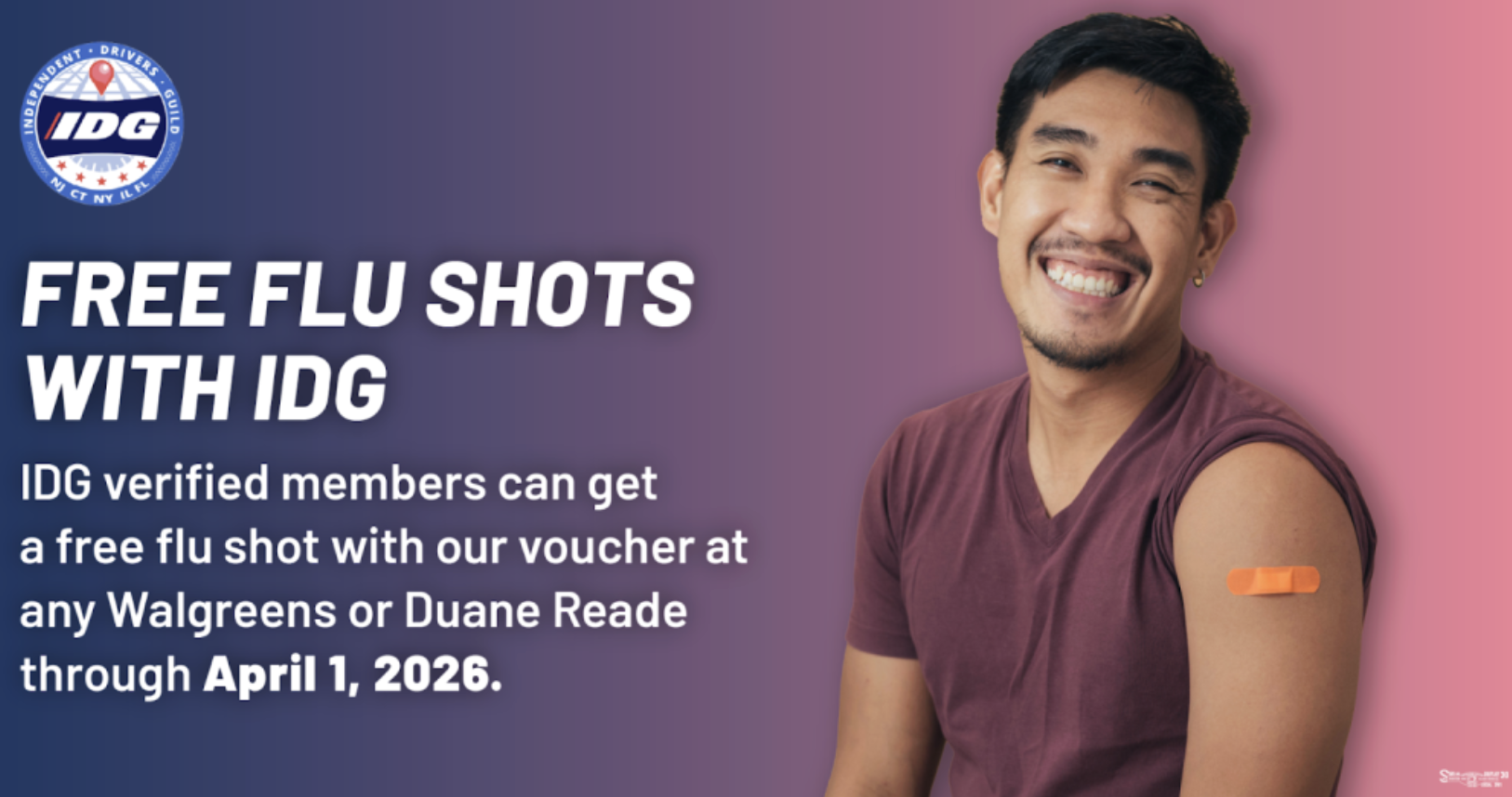 Free flu shot vouchers are provided by the Independent Drivers Guild. Become a member today and get your free flu shot!